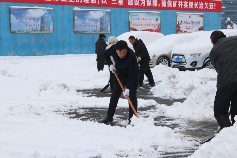 雪后雖然處處是美景,但也給職工出行帶來堵多不便。為了消除積雪帶來的不便和安全隱患,在崗職工自發(fā)拿起鐵鍬、掃帚,清掃礦內(nèi)道路冰雪。